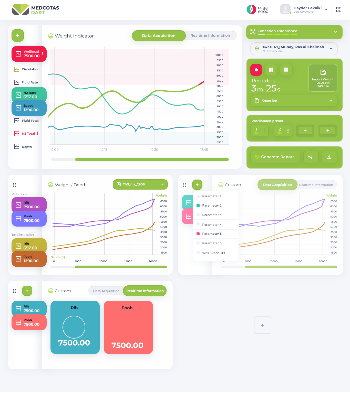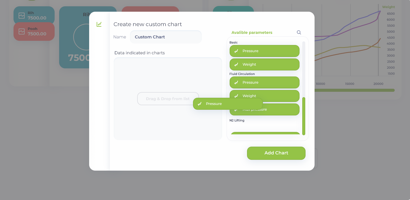 - Corrlation chart such as Weight vs Depth, and Pump Pressure vs flow rate